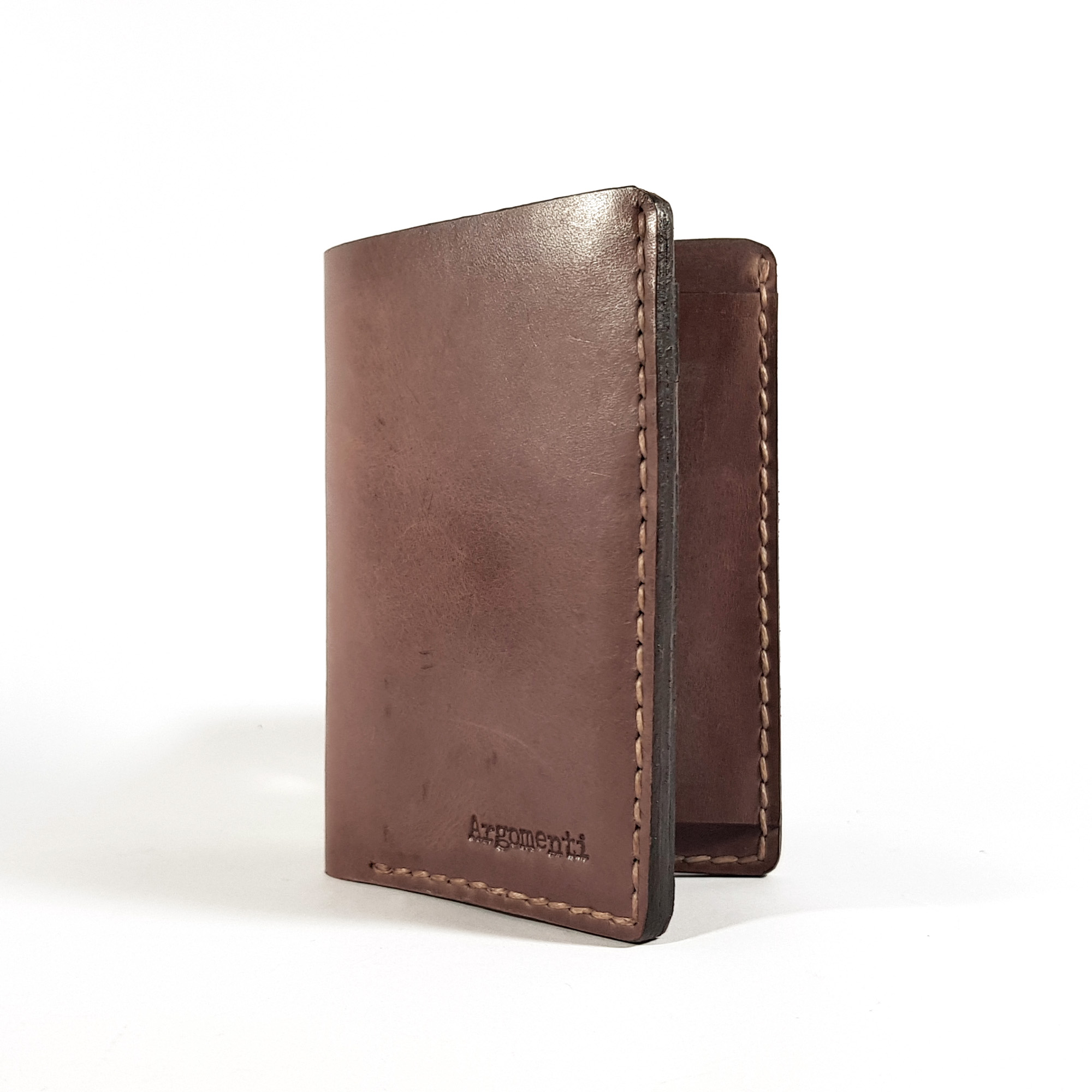 Това е вертикалният портфейл на Argomenti – хората които създават и правят портфейли. Стил и класав по-различна от типичната форма. Здравина, дълъг живот и строга визия изцяло изработен на ръка. Функционалноста на Veryical е класика погледната от нов ъгъл – Вертикален. Прегради за банкноти, карти, монети и лични документи. Всеки цвят на портфейла Vertical е избран, за да удовлетвори първичните асоциации на клиентите ни към тяхната лична ВиЗия. Класическа изчистена или екстравагантна е твоята, решаваш ти…..